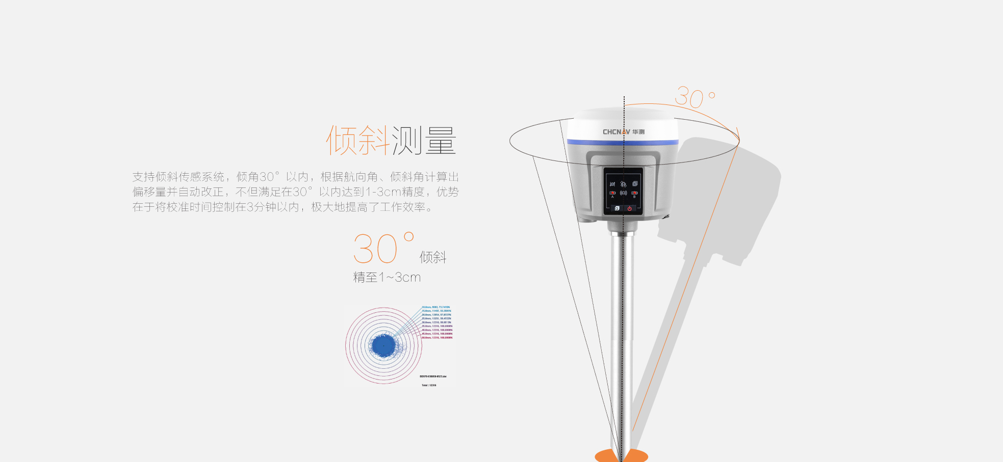 X10pro標配支持傾斜測量系統(tǒng),支持30°以內(nèi)精度≤3cm