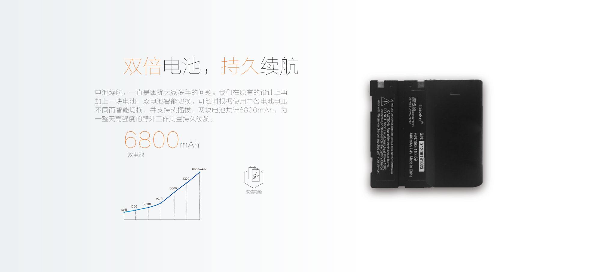 RTK模式12小時,可外接直流電,雙電池電源自動切換